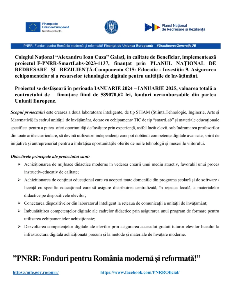 Anunț înscriere clasa a IX-a