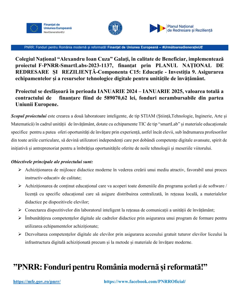 PNRR – SMART LABS FOR BRIGHT STUDENTS